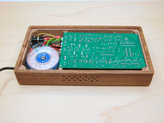 Wo ich diese Uhr zum erstem Mal gesehen weiß ich leider nicht mehr. Beim Googeln findet man aber recht schnell die passenden Seiten mit Tipps und Materialquellen. Die Uhr arbeitet mit einem Atmel-Controller, den kann man aber fertig bei den Wüstens bekommen. Auch Leiterplatten, Trafo und Röhren, oder die ganze Uhr als Bausatz. Ich habe den Bausatz bestellt, der kommt mit einer sehr ausführlichen Anleitung zum Aufbau und der Einstellung. Die Röhre ist aus meiner Bastelkiste, wie sich später zeigte, ein bezüglich Erdmagnetfeld sehr empfindliches Teil. Das Gehäuse ist aus Mahagoni, man gönnt sich ja sonst nichts, war eine schöne Arbeit mit den beiden CNC-Maschinen. Eine Menge Staub, die der Staubsauger nicht erwischt hat inklusive. |