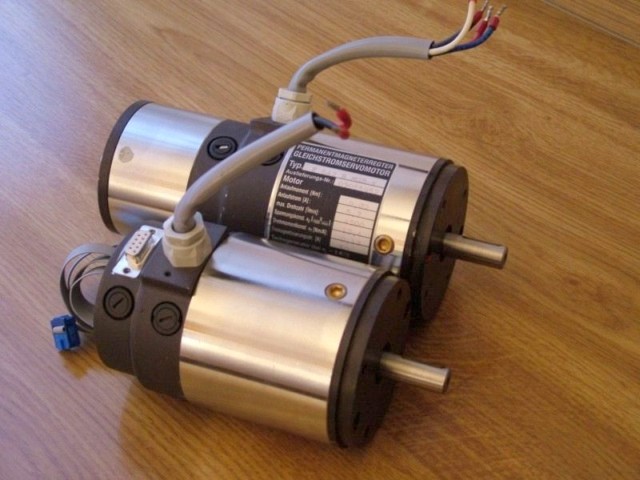 Die Servomotoren für die Achsantriebe bekamen statt des Tachogenerators einen Encoder. Dazu muss der Motor zerlegt werden. Wenn der Anker gezogen wird, ist unbedingt gleichzeitig ein passendes Eisenrohr in den Stator einzuschieben um eine Schwächung der Magnete zu vermeiden. |