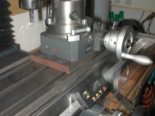 schützen. Der Rundtisch brauchte nun eine Unterlage, da die Kurbel auf der Abdeckung auflag. |