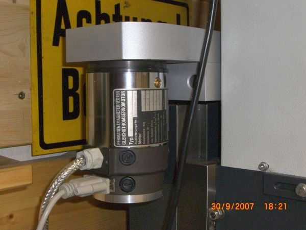 Als letzte Aktion bekam die Wabeco noch eine optionale Schnelllaufspindel. Mit den 17500 U/min und 200W Motorleistung ist sie gut zum Gravieren geeignet. |